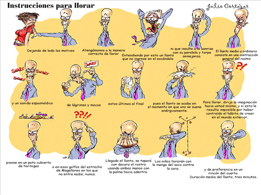 "Instrucciones para llorar" de Julio Cortázar 29 de abril de 2015 - 00:16 - Textos literarios 2º Bach. http://www.ciudadseva.com/textos/cuentos/esp/cortazar/instrucciones_para_llorar.htm Facebook Twitter Whatsapp Email